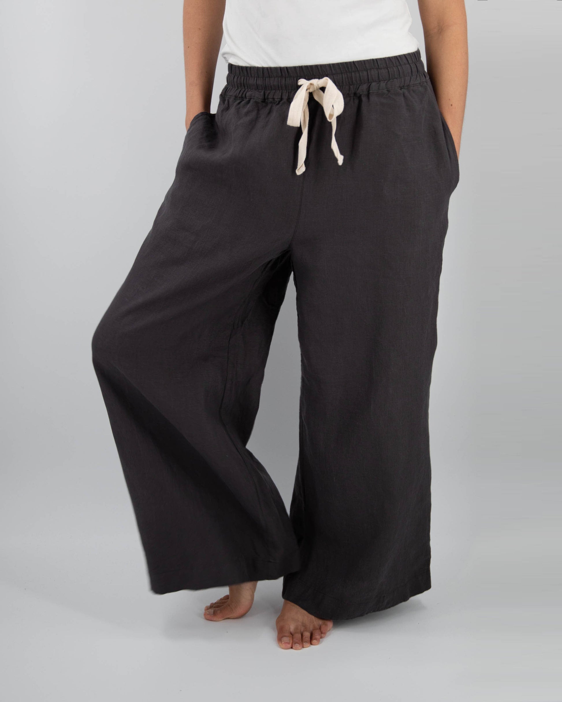 Our Ava Wide Leg Linen Drawstring Pant, comprised of French linen, is an incredibly comfortable, soft, full length, wide leg, elasticated waistband pant. While it is comfortable enough to be used as sleepwear, it is chic enough to wear to grab brunch, walk the dog, or engage in any other Sunday Morning activity.