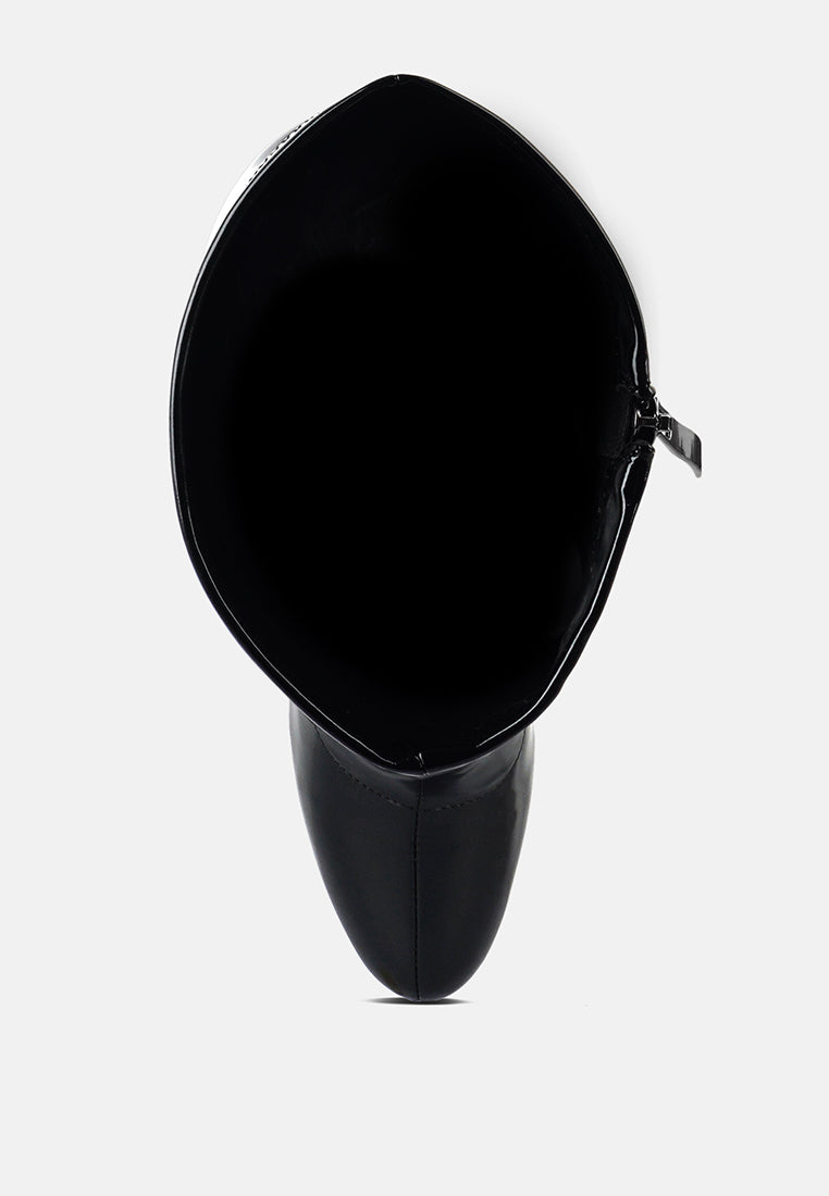 These boots are the epitome of sublime chic with the gorgeous rhinestones embellished patchwork. The embellished jewel fantasy heel accentuates the design with its extravagant touch and gives the boots an opulent look. The high-heeled boots are also quite versatile and a must-have for fashion-forward pupils!